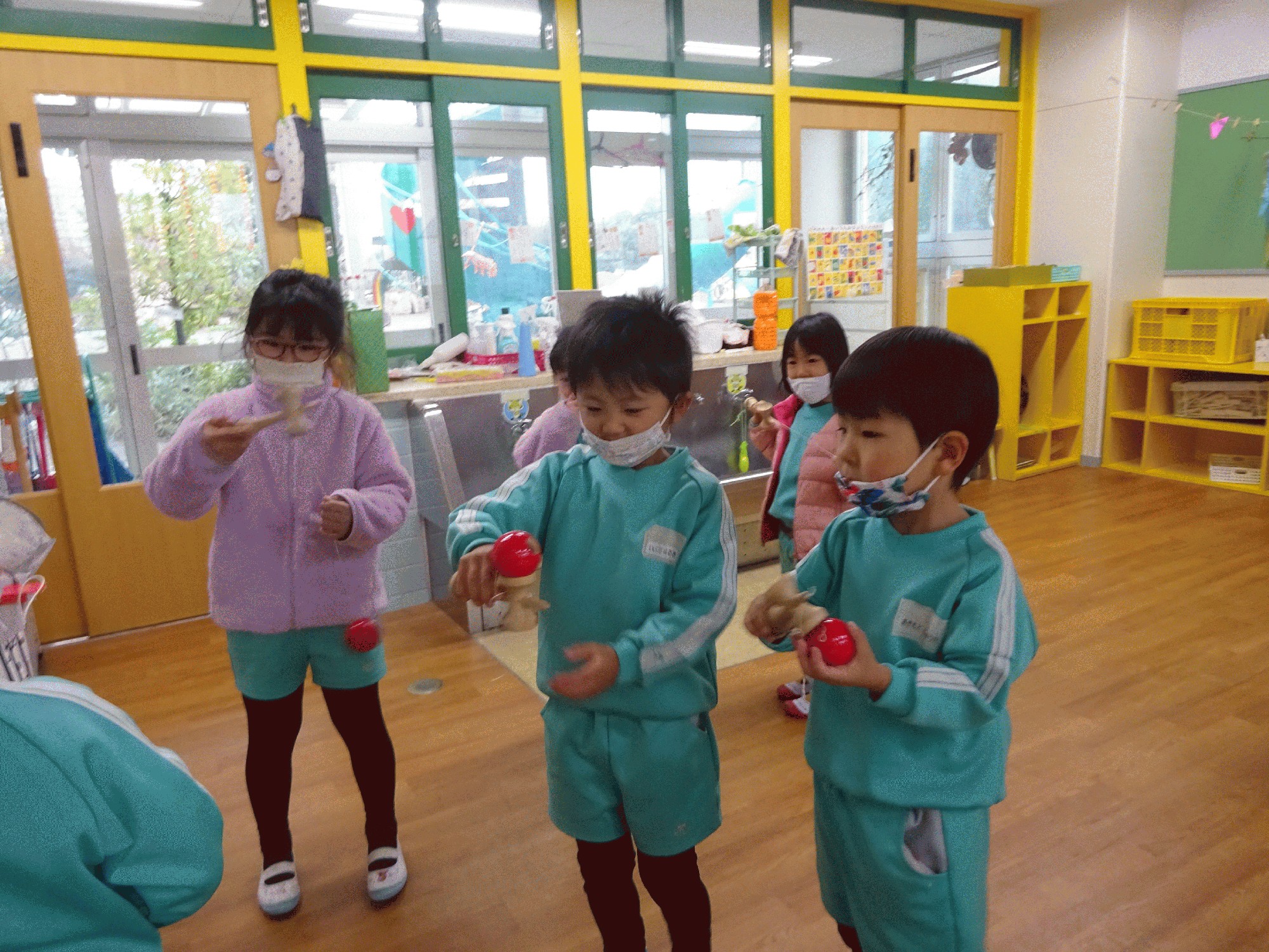 けん玉は最初は中々出来ず難しかったけれど、毎日コツコツ練習をして(家で自主練している子もいるそうです✨)お皿に乗せる事が出来る子も増えています!!大人でも中々難しいですよね!