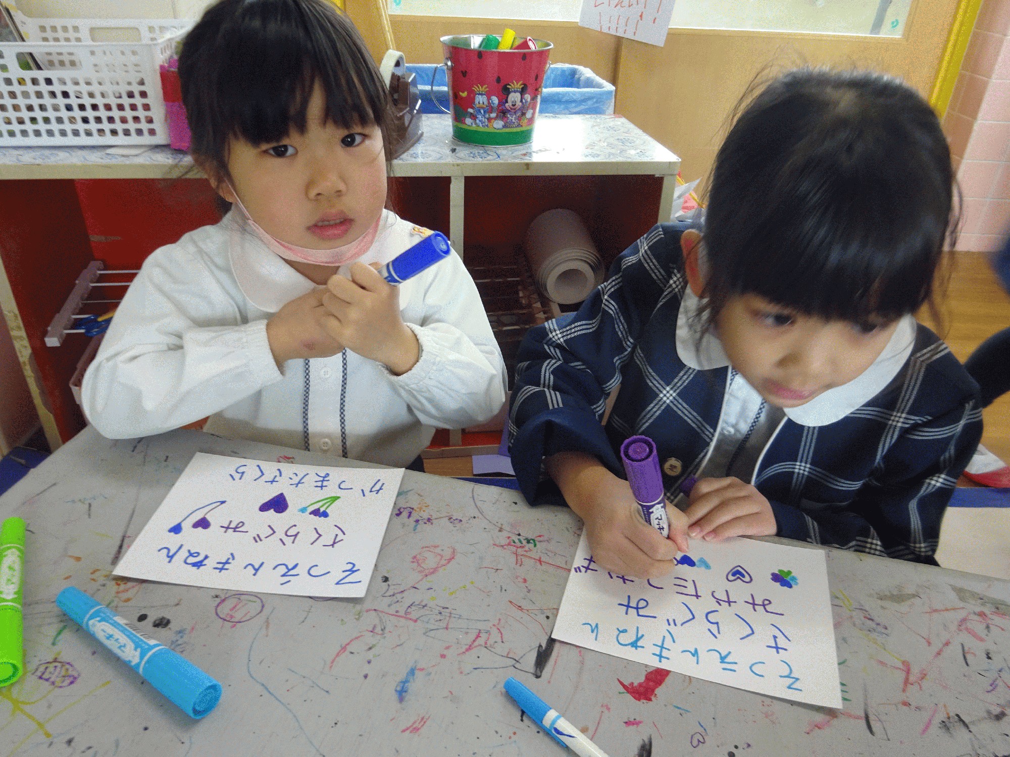 文字を書くのがまだ苦手な子もいますが、