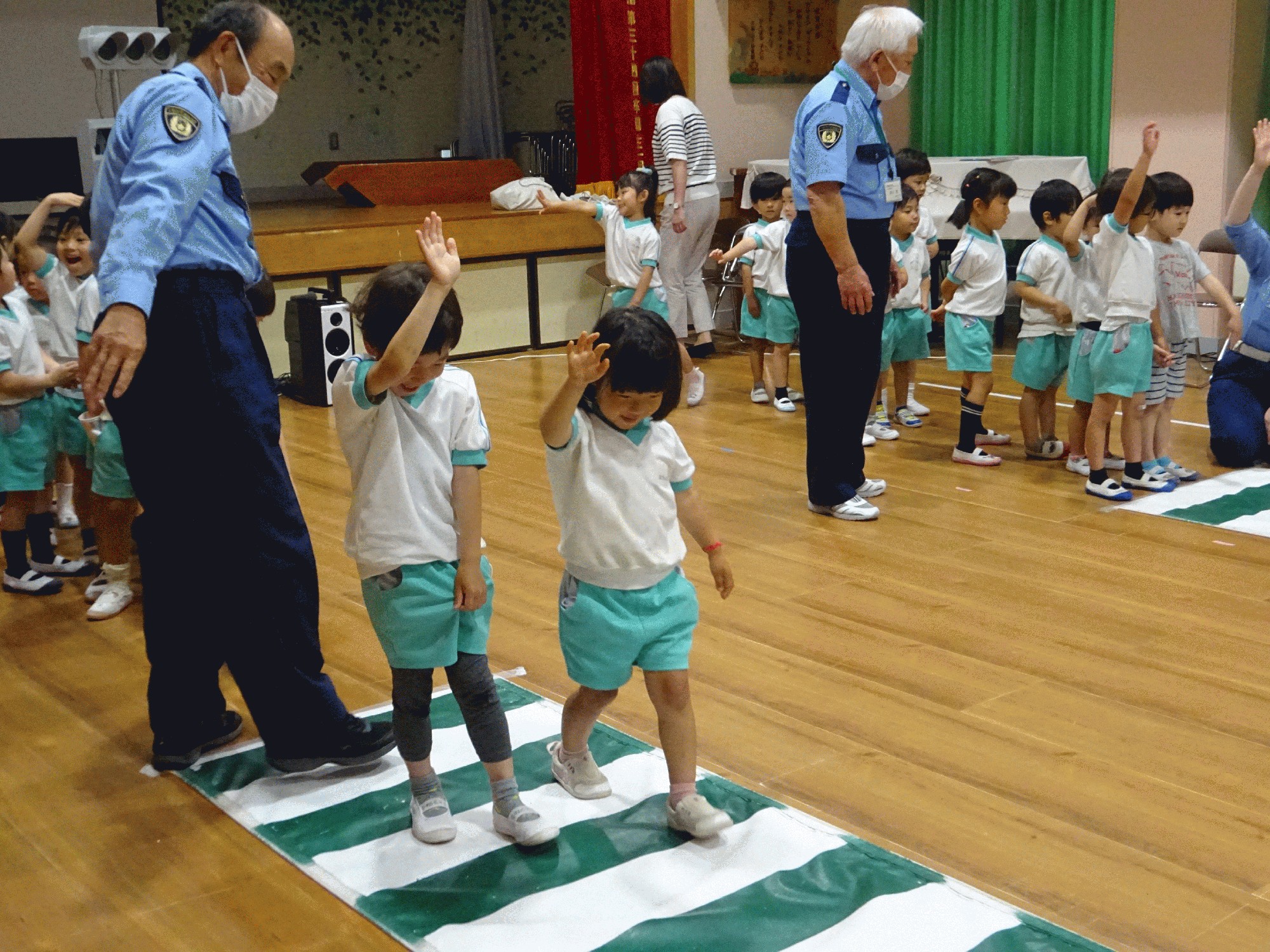 手を挙げて...みぎっ、ひだりっ、みぎ!と