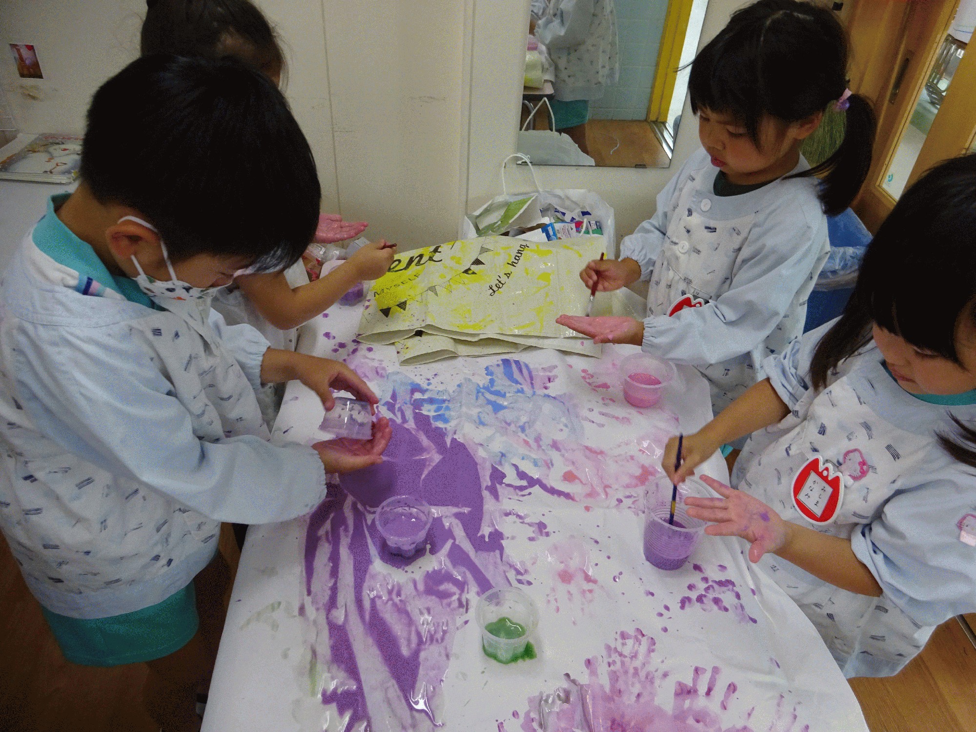 混ざり合う可愛らしい色が出来た子どもは、