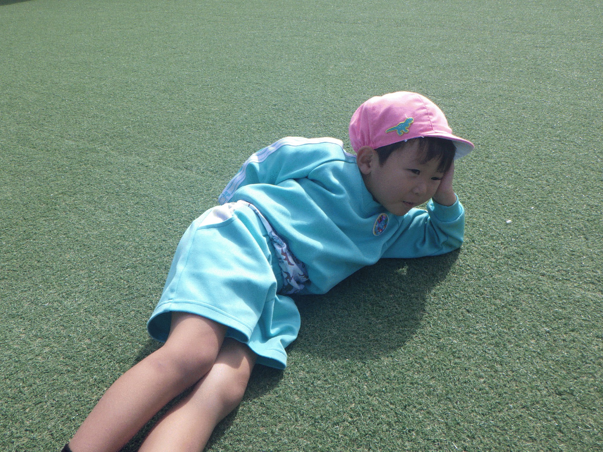 その隣では、芝生にゴロンと寝転がりくつろいでいる子が。