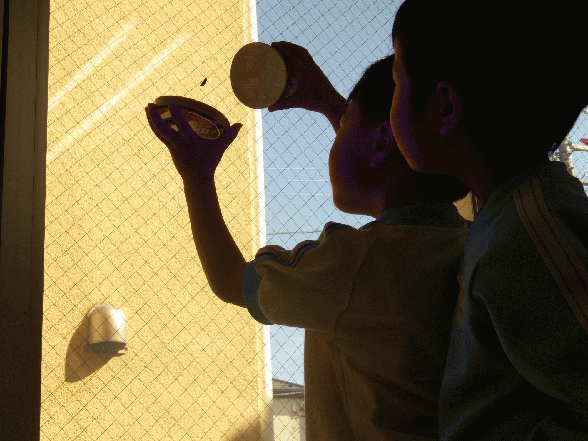 今日、幼稚園に虫カゴを持ってきた為のぞくと一緒にいたバッタは見当たらず…