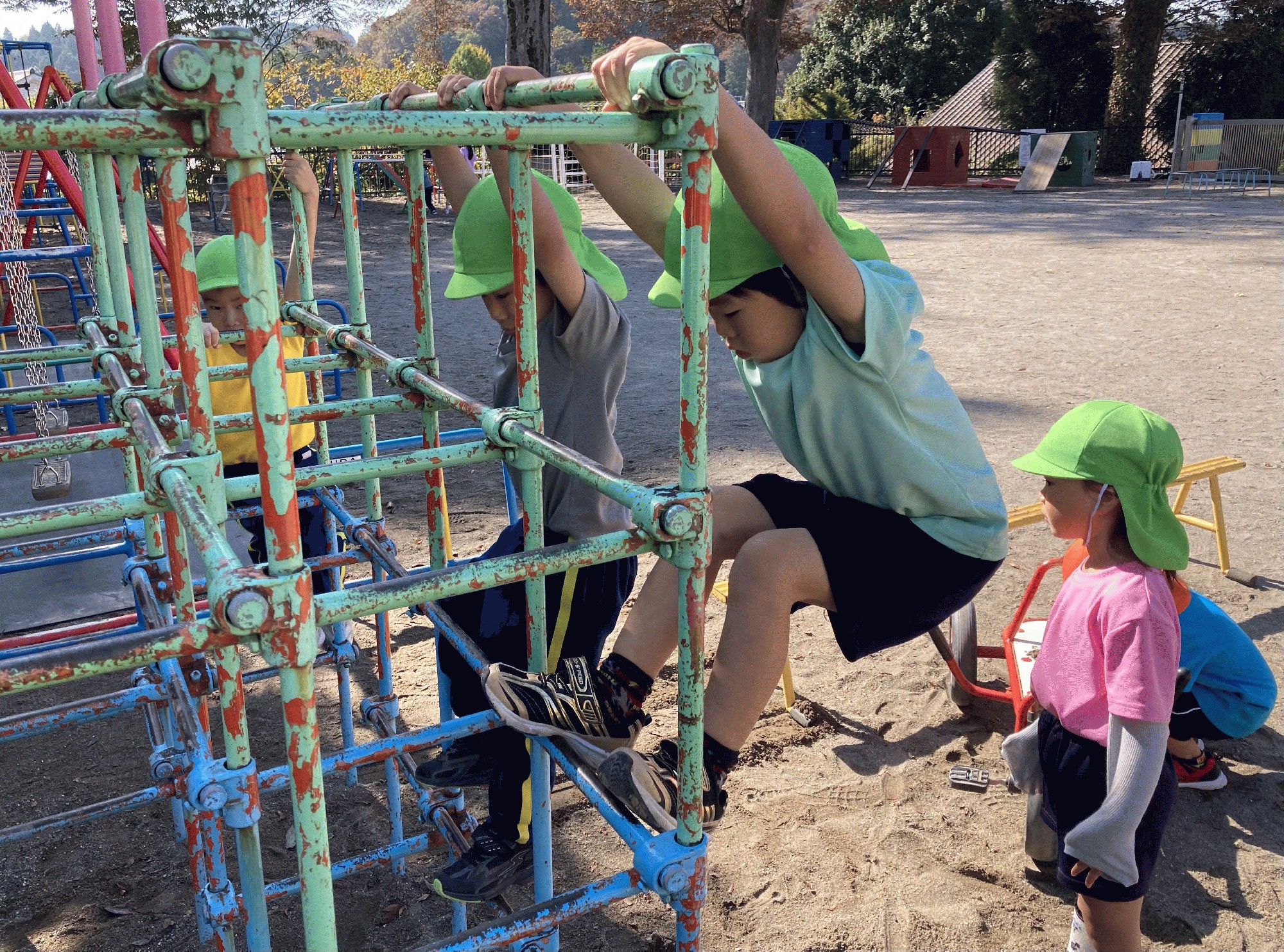 🔴園かばんにキーホルダーが沢山付いていて、絡まってしまうお友だちがいます。キーホルダーは、自分のリュックの目印になるように、1個だけ付けるといいかと思います。よろしくお願い致します。
