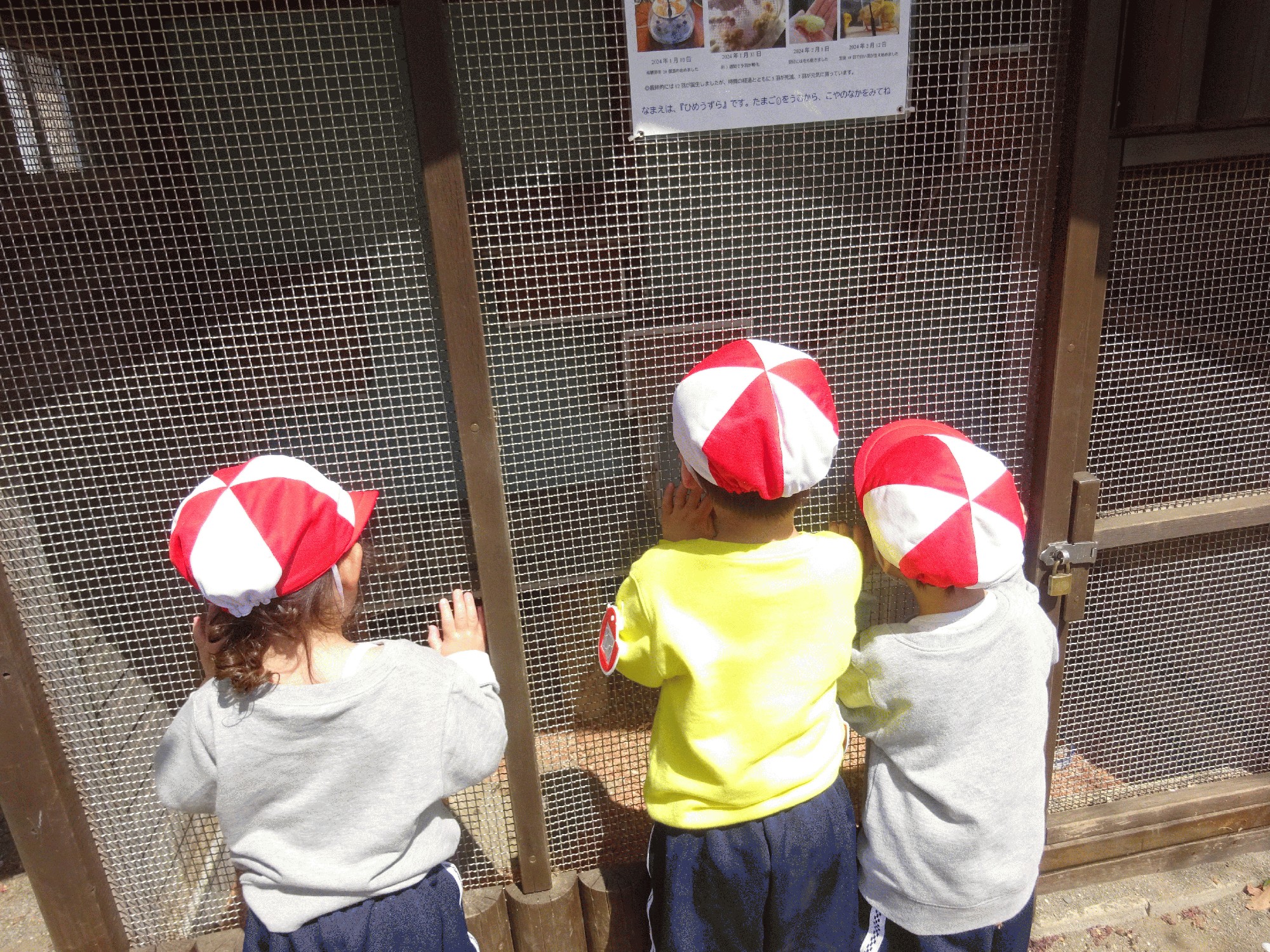 「貸して!」と三輪車を貸し借りしてみたり、一緒に三輪車に乗り園庭をお散歩してみたり、、、クラスの子どもたちも馴染んできて一緒に遊ぶ様子がたくさんみられました🌟まだまだ幼稚園が始まったばかりですが、幼稚園に馴染むはやさに驚く毎日です。一緒に手を繋いで遊具の上を歩いている姿もあり「いつの間に仲良くなったの!?」と新しい発見でした🤩すみれ組の子たちが、同じクラスの子と一緒に遊ぶ姿はとても微笑ましく、幸せな気持ちになりました🥰そして、今年の4月から山王幼稚園の仲間になったうずら!!うずらをみんなで見ている姿では、「みて!鳥!!」と私に教えてくれました。私が「これはうずらって言うんだよ」と教えると「うずら!うずら!」と嬉しそうにうずらに向かってお名前を呼んでいました。