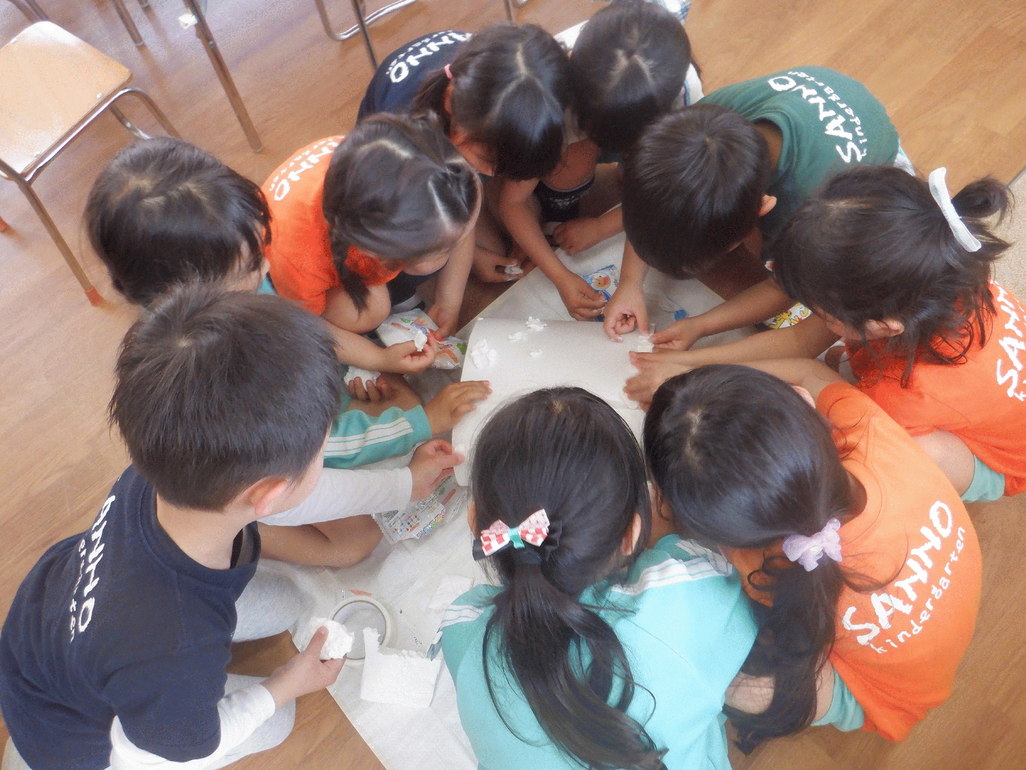 今日は、「誕生日をどのようにお祝いしてもらったら嬉しいか?」をテーマに子ども達と話し合いを行いました☺︎沢山のアイデアが出たのですが、中にはエアコンの風量を確かめる為のスズランテープを見て「あんな感じでエアコンの風を使って飾りをピラピラさせよう!」というユニークな提案もありました🌬️そして、子ども達との話し合いの中で1番盛り上がった「大きなケーキを紙粘土で作る」という事を今日は実行してみる事にしました✨ケーキの土台は型紙で作り、紙粘土を生クリームに見立ててボンドで貼り付けました。みんなの理想のケーキにする為に、これから飾り付けをしたり、ロウソクを作ったりするのが楽しみだね♡みんなの一年に一度の誕生日がより素敵な日になる様に、協力して創り上げようね💖