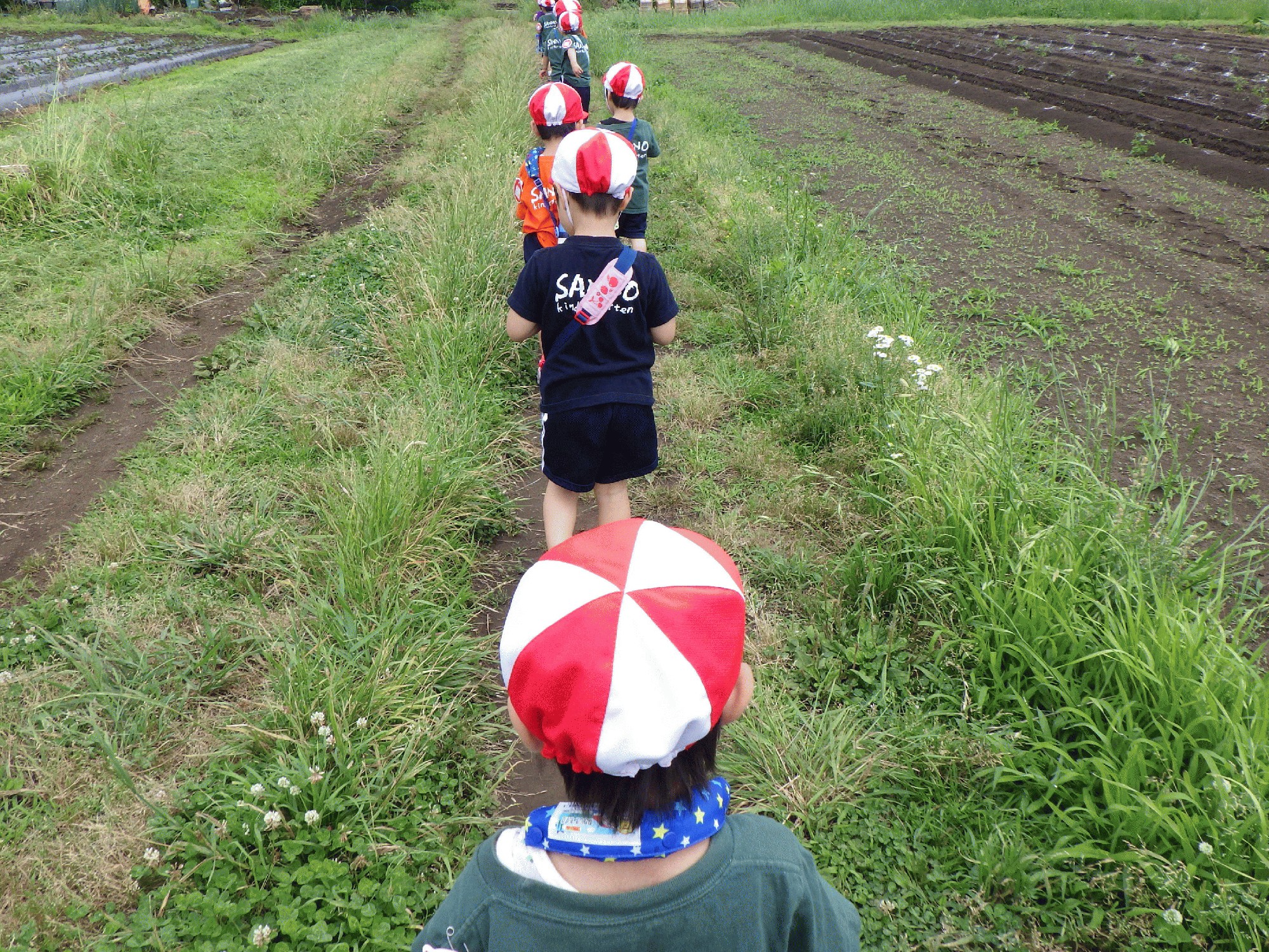 1時間ほど遊んだその時「ねえ、お腹空いたから幼稚園戻ろうよ!」と子どもが声をかけてきました。子どもたちもたくさん遊んだ様子だったので、片付けをし幼稚園へ帰ることにしました。帰りの子どもたちは疲れ切っているのかなと思いきや、帰り道「ジャングルぐるぐる」を口ずさみながら帰っていました!たくさん歩いてたくさん遊んだ1日でしたが、子どもたちは無限の体力で帰りもお散歩を楽しんでいました🎶
