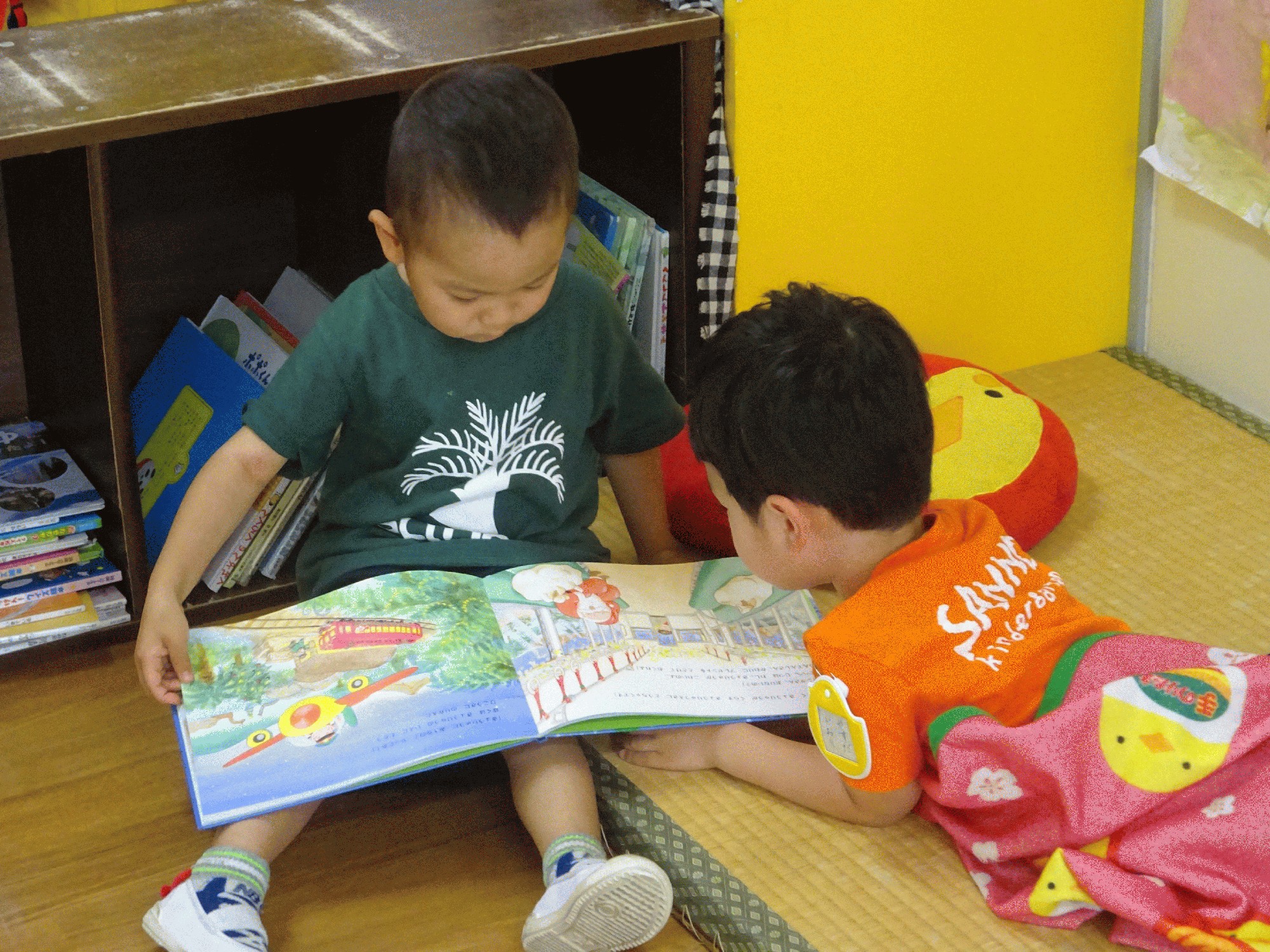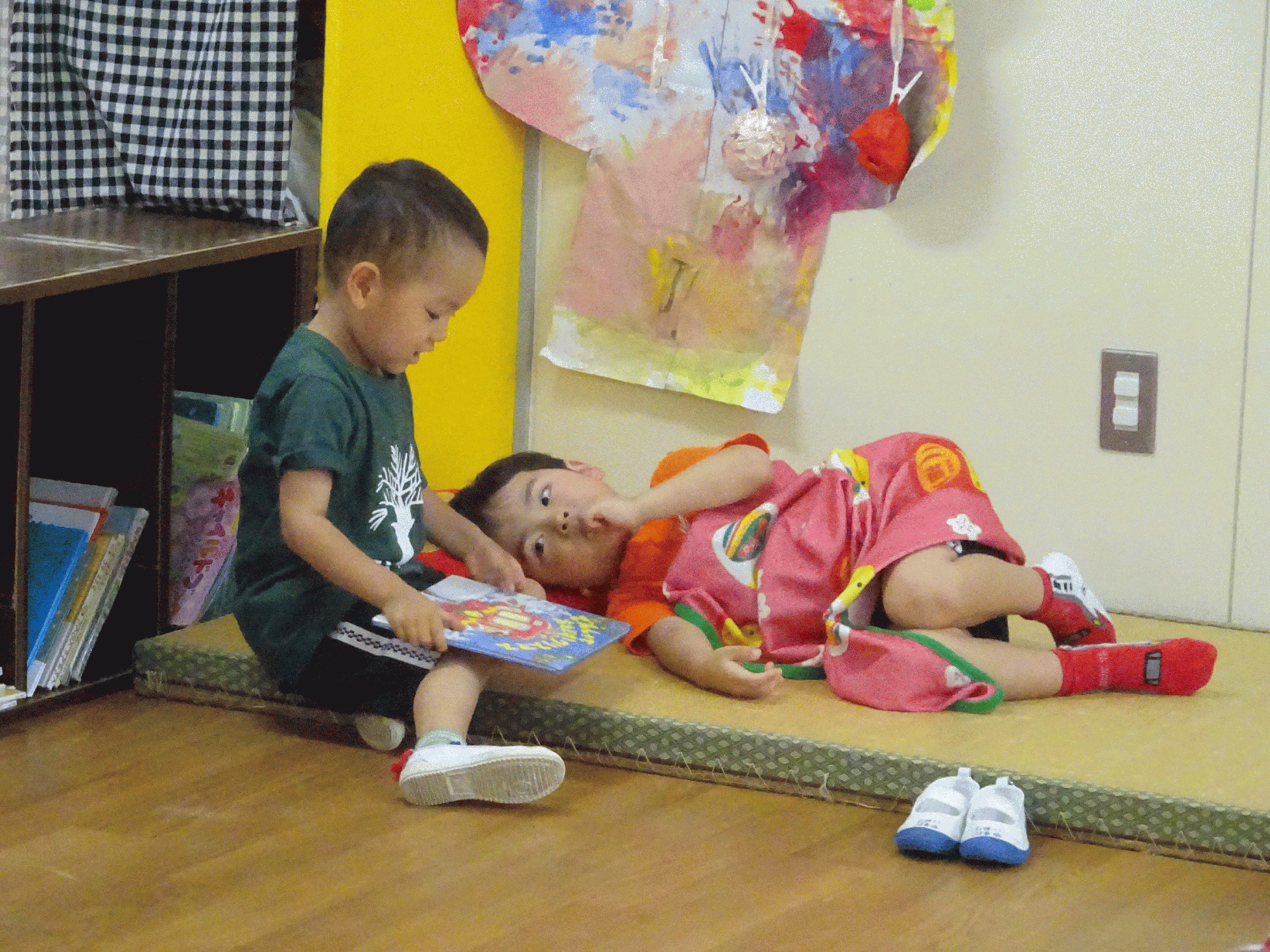 その後、寝ている子の近くに行き「ぼくが絵本読んであげるよ」と言い絵本の読み聞かせをしてあげていました📕✨