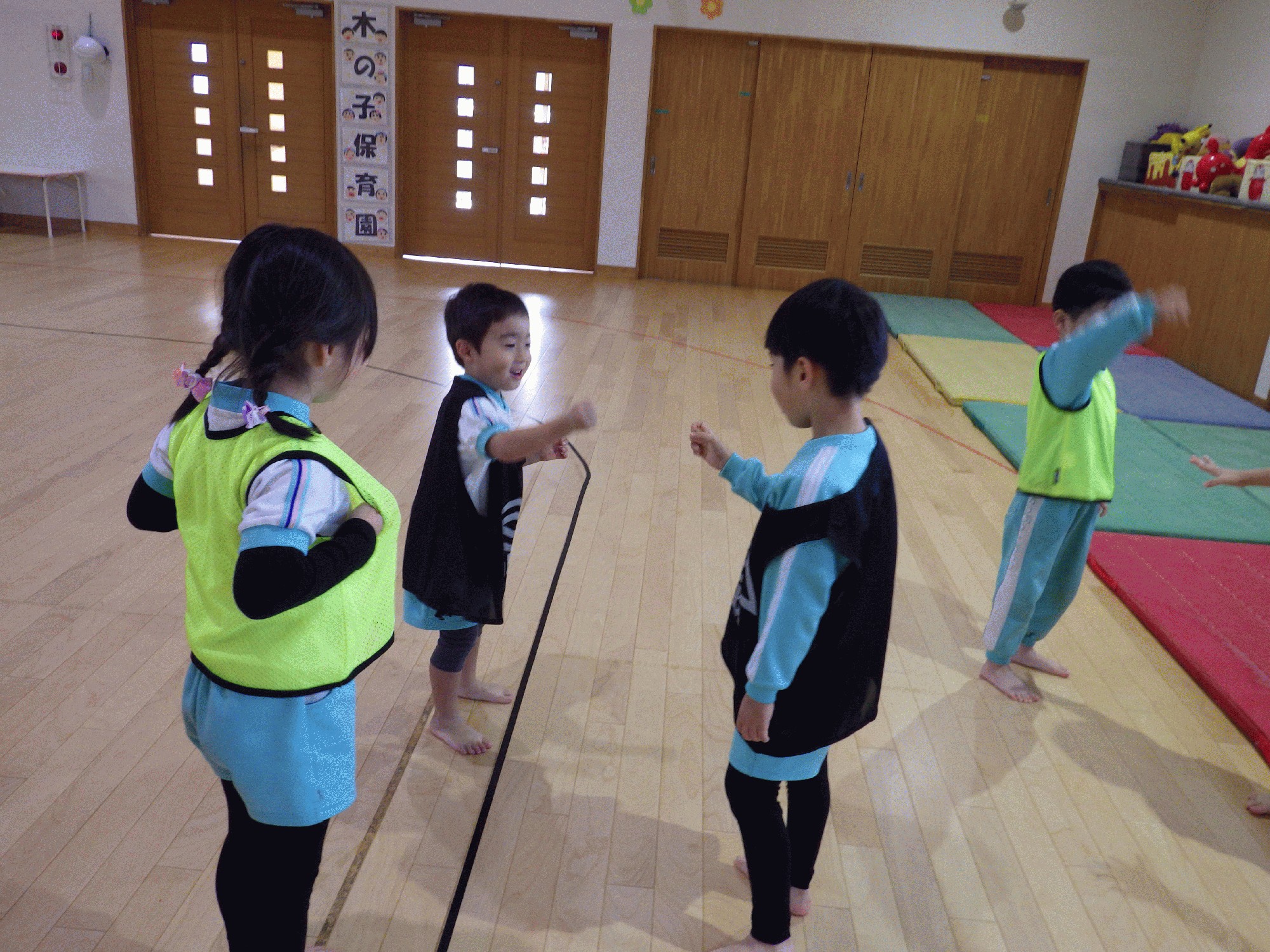 今日は木の子ホールで木の子保育園の子どもたちと運動遊びを行いました!