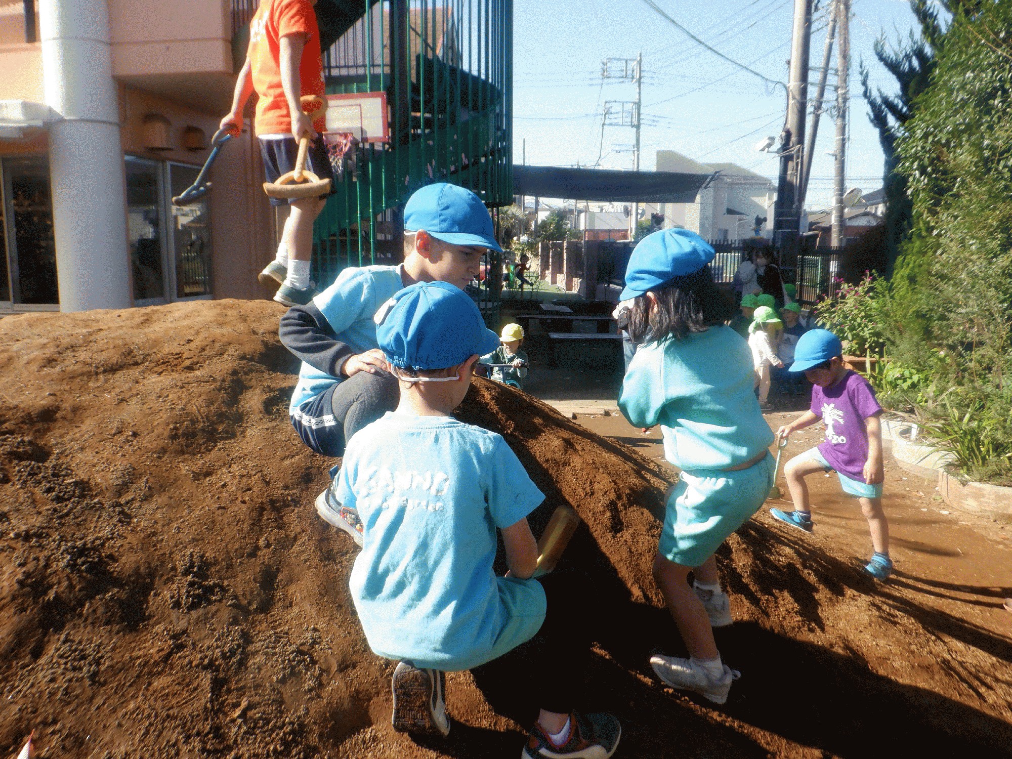 - 秋晴れ 降園前に一緒に遊んだ