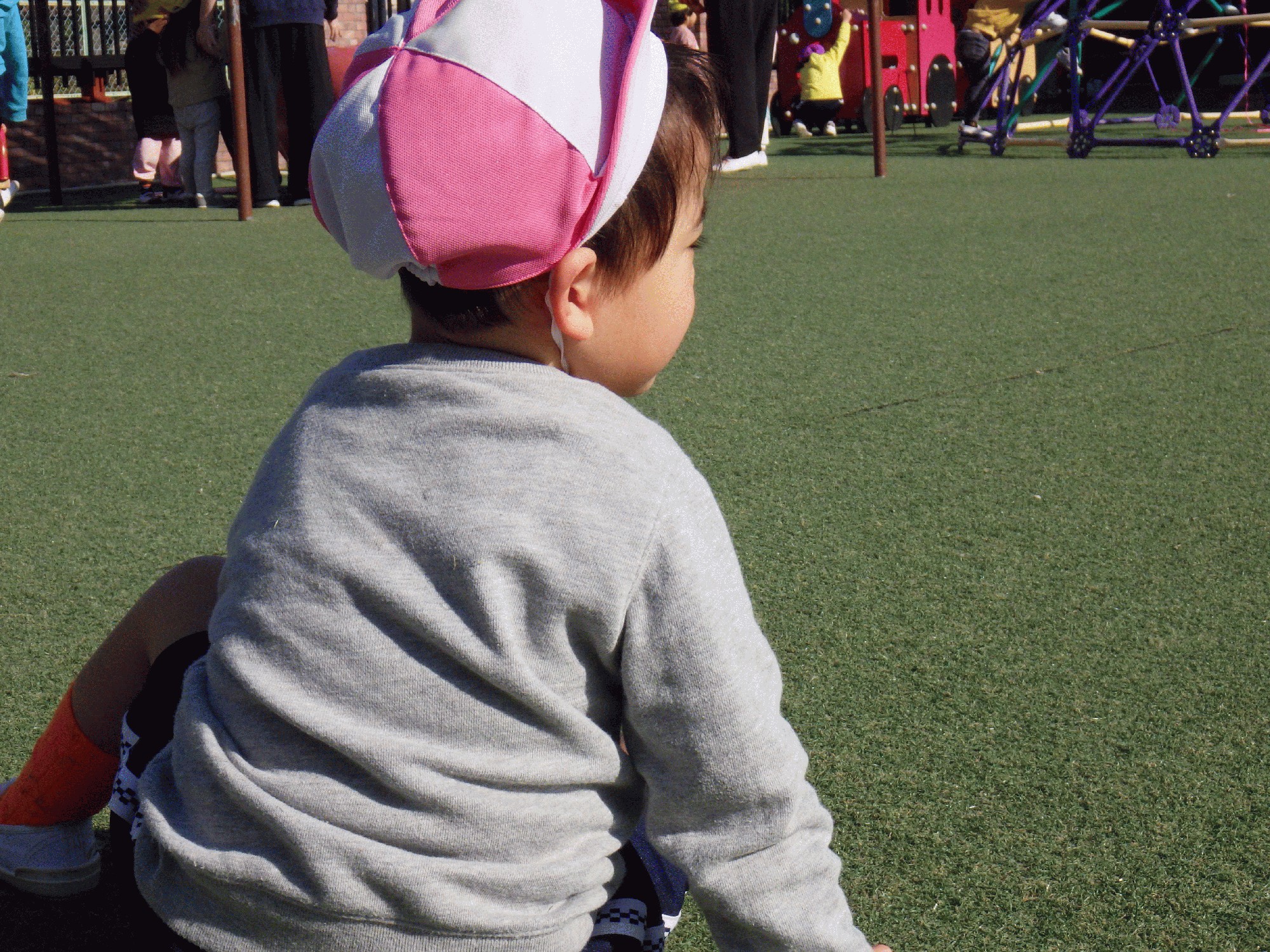 今日は天気が良く、芝生で遊びました!