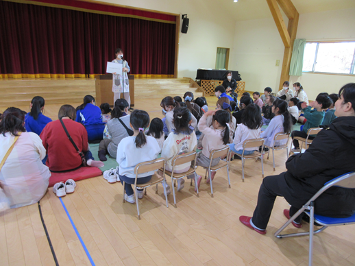 今日は,1月生まれのお友達、2名のお誕生会をしました。スライドショーは、お家の方も楽しみにしていてくださる様で好評です。担任からカードをもらい一生懸命カードを見ていた二人でした。担当の先生からは動物の鳴き声当てクイズを皆で楽しみ、最後は記念撮影をして終了しました。