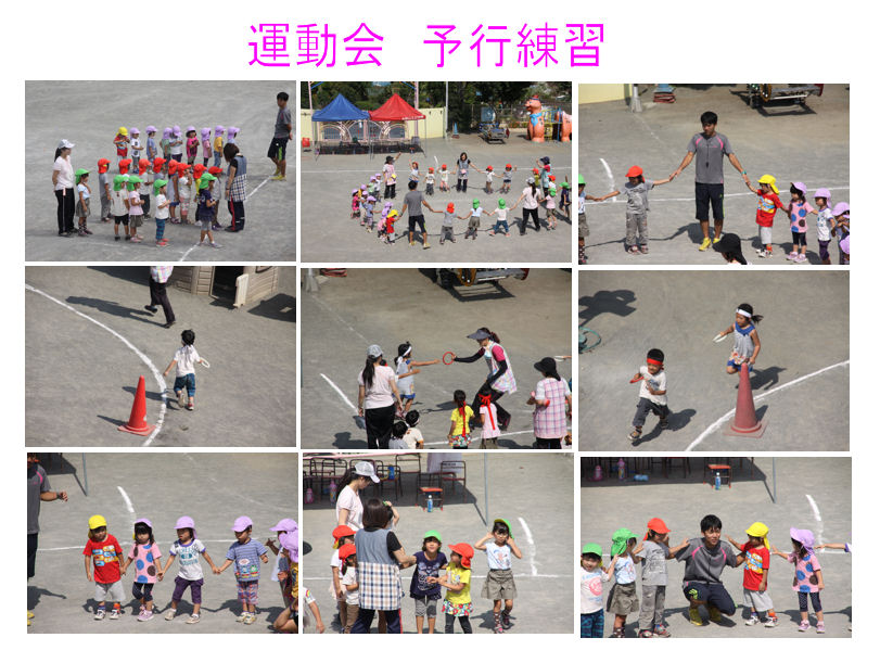 本日、幼稚園の園庭で予行練習をおこないました。