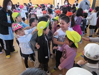 今日は、年長さんだけ山王幼稚園の年長さんと一緒に林間小学校を就学前訪問させて頂きました。つくと現在の一年生が子ども達とペアになり一緒に行動、案内をしてくれました。ゲームのときも優しく貨物列車ごっこで遊んでくれました。最後は、歌まで披露してくれて、子ども達は小学校って楽しそう〜と笑顔があふれていました。