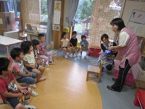 くまさんは、紙芝居や先生のお話も良く聞くことができ皆手洗いに一生懸命でしたよ。みんな毎日きれいに手を洗ってばい菌さんとバイバイしましょうね!