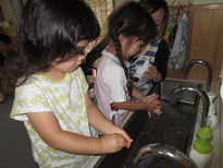 くま、りす組手洗い指導!