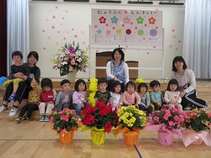新しい担任の先生達の紹介と新しいお友達の紹介をして記念撮影をしました。また、この一年間元気に保育園に通って心も体も大きくなって欲しいと願っています。